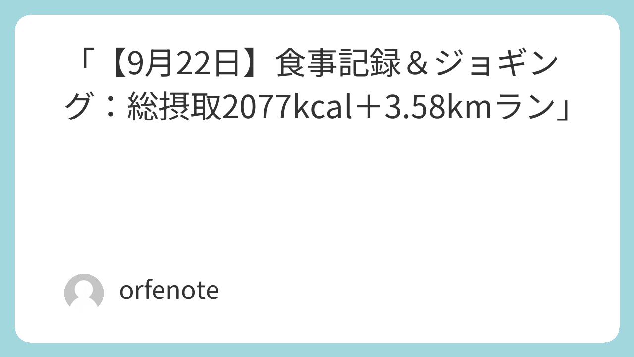 「【9月22日】食事記録&ジョギング:総摂取2077kcal+3.58kmラン」