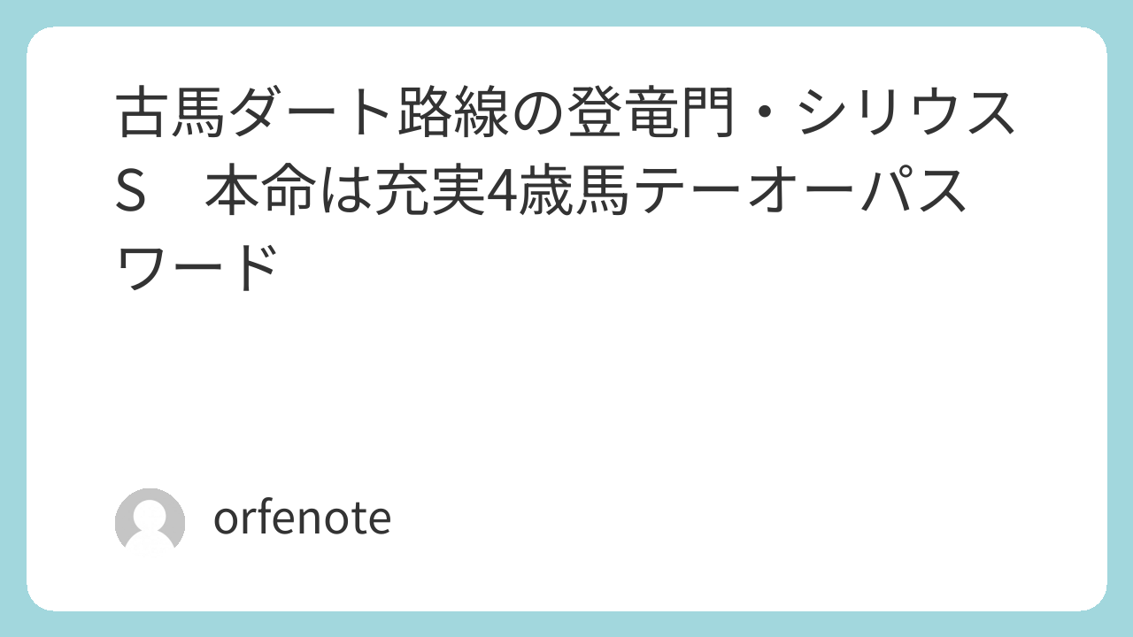 #シリウスステークス #競馬予想 #単勝一点勝負 #オルフェの馬券勝負