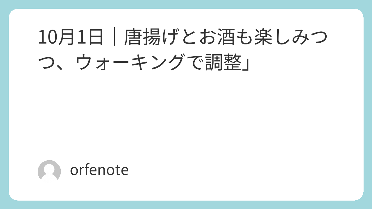 10月1日|唐揚げとお酒も楽しみつつ、ウォーキングで調整」