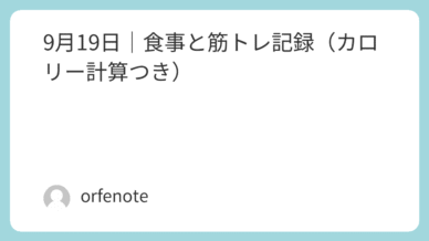 マラソン挑戦 9月19日|食事と筋トレ記録(カロリー計算つき) こんにちは、オルフェです。今日は9月19日の食事とトレーニングをまとめていきます。カロリー計算も入れて、日々の記録として整理しました。⸻朝食 • バナナ1本 … 約86 kcal • マーガリンレーズ... 2025.09.20 マラソン挑戦