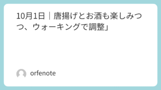 マラソン挑戦 10月1日|唐揚げとお酒も楽しみつつ、ウォーキングで調整」 ⸻本文今日は朝からシチューとご飯でしっかりエネルギーチャージ。昼は野菜生活200mlだけにして軽めに調整しました。夜は唐揚げ2個に冷や奴、ツナサラダ、ご飯、そして缶チューハイ2本で満足感ある食事に。1日の合計は 1,793 kcal。さらに... 2025.10.01 マラソン挑戦